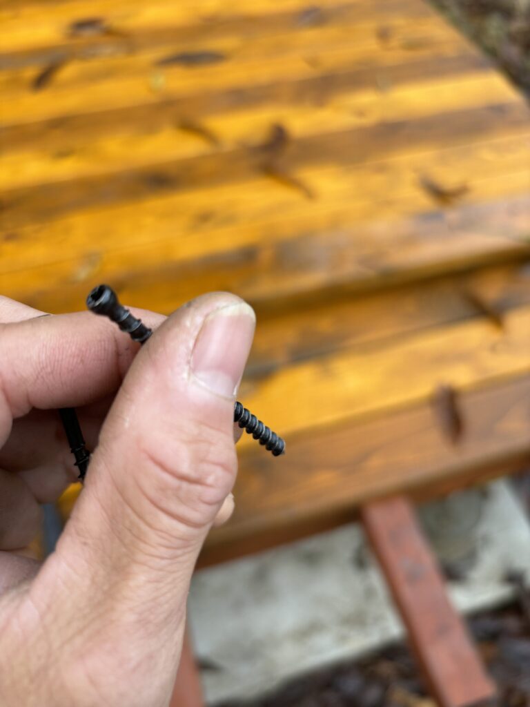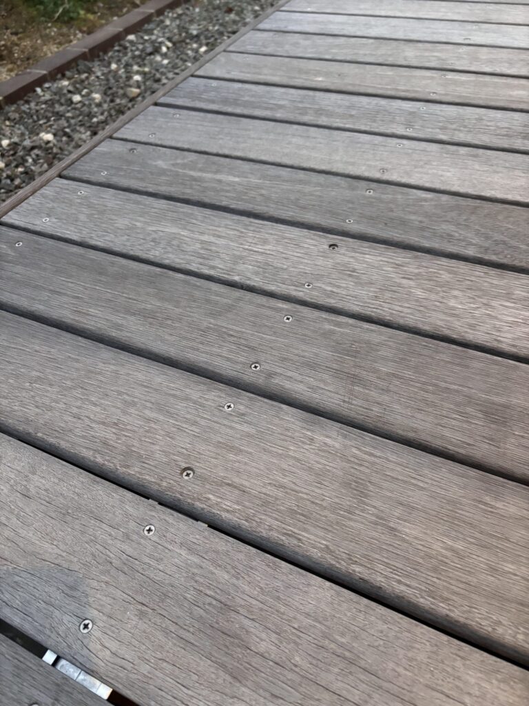 本来のウッドデッキだと板を固定するためにこのようなビスの頭が正面に出てきてしまいます。