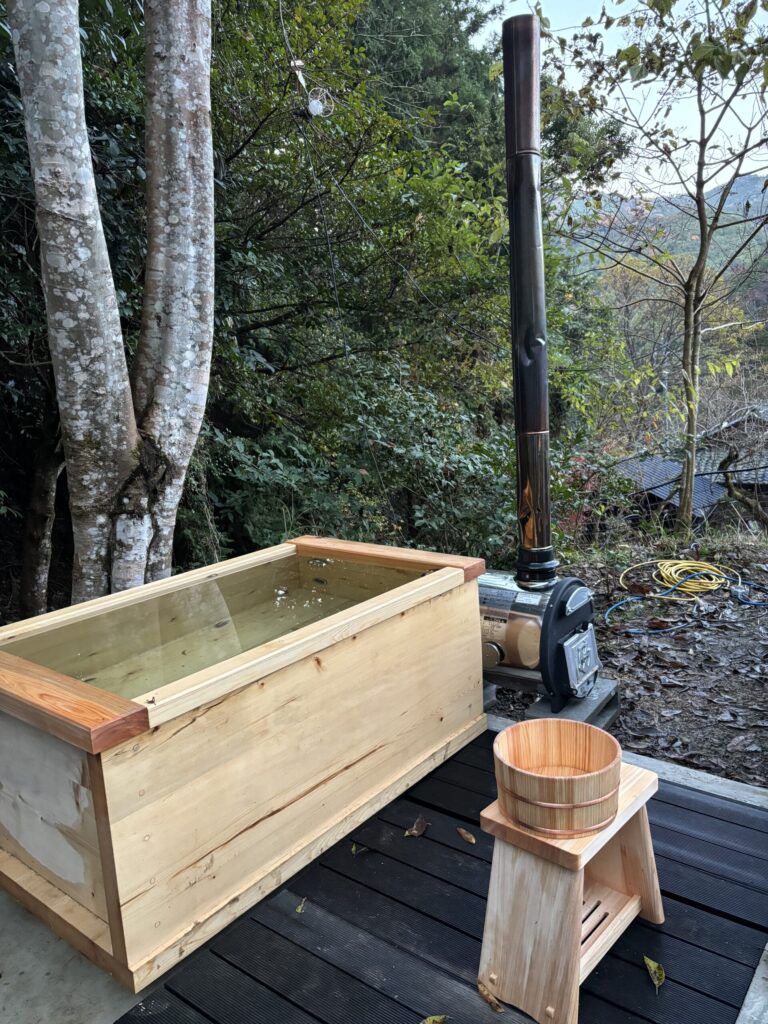水風呂の浴槽は、「マキの木」を使い、一から製作しています。