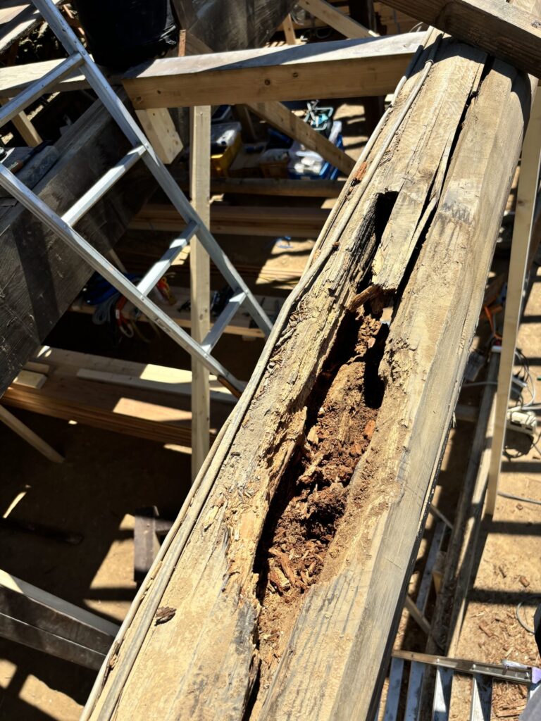 屋根を支えている桁の一部に、修復が必要な箇所が見つかりました。